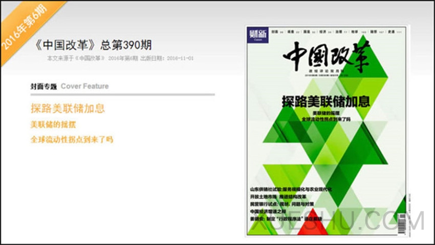 《中国改革》杂志是政经评论,中国经济、经济计划与管理优秀杂志,紧贴时事,评述影响中国改革进程的重大事件和焦点人物;高屋建瓴,建构转型社会的公民认识框架;服务高端,为进步中国的设计者、决策者建言。